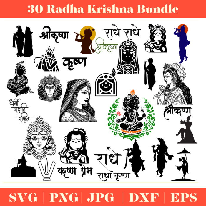 Celebrate the divine love of Radha and Krishna with this exquisite 30 Radha Krishna Bundle! Featuring 30 unique and detailed designs of the beloved deities, this bundle is perfect for a wide variety of creative projects. Whether you’re making spiritual artwork, custom apparel, home decor, or personalized gifts, these designs bring beauty, elegance, and devotion to any project.